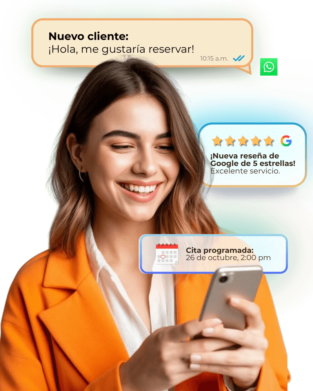 Más rapidez, más respuestas, más citas, más reseñas y más ventas. Tienes un sistema que trabaja 24/7 por ti, sin descanso.